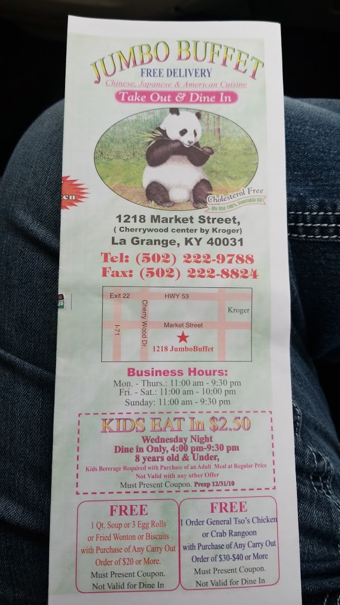 Welcome to Jumbo Buffet - La Grange, located at 1218 Market St, La Grange, KY, where culinary delight meets a vibrant dining atmosphere. Known for its bright, clean, and inviting environment, this buffet offers an exquisite array of dishes that cater to every palate. Customers rave about the fresh seafood, particularly the crab and sushi selections, alongside mouthwatering options like chicken and unique delicacies such as fish and frog legs.